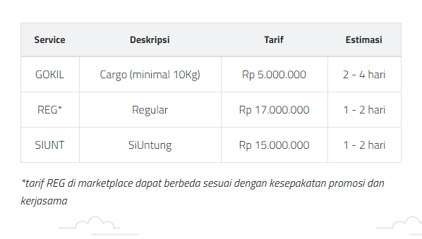 Estimasi pengiriman mulai dari 3 hingga 7 hari tergantung tujuan. Jne trucking tidak melayani pengiriman makanan yang tidak awet dalam hitungan hari. Jne trucking melayani pengiriman sepeda motor. Deliveree hadir untuk bisa menjadi 'jembatan' bagi anda terutama pebisnis yang kerap melakukan pengiriman kargo antar kota dalam jumlah banyak. Deliveree memiliki banyak keunggulan terkini 2021 yang dapat memudahkan …